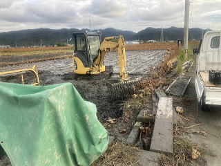 | ユンボで土を除き |